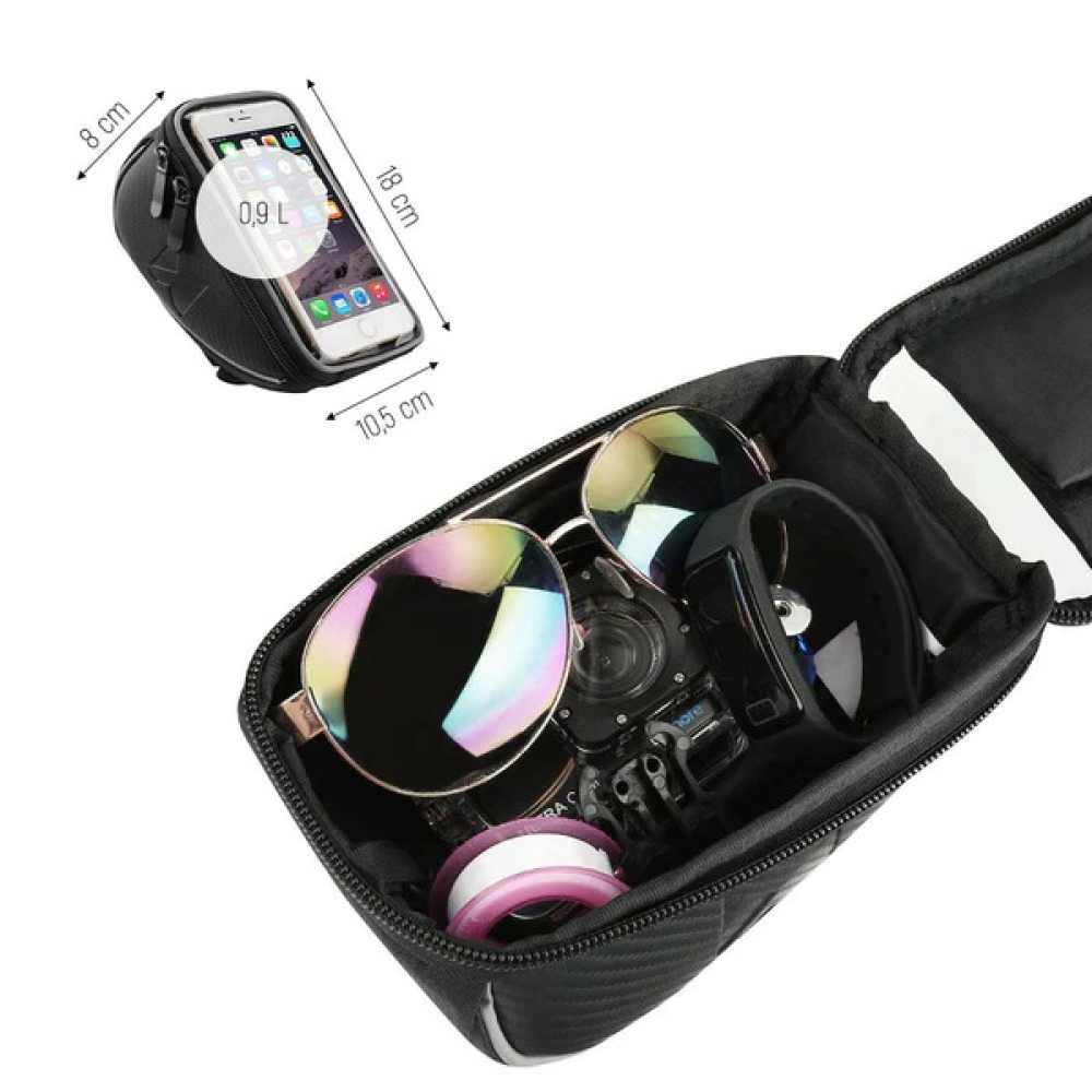 Wozinsky handlebar bike bag - phone case for bike up to 6.5 inch - black (WBB4BK)